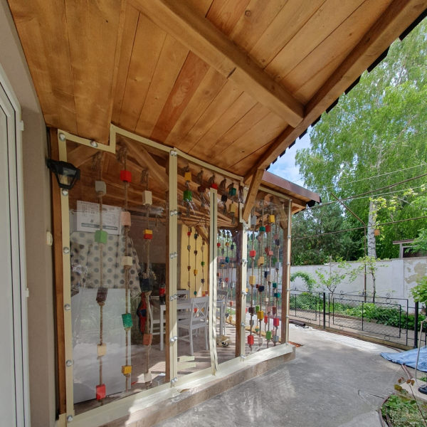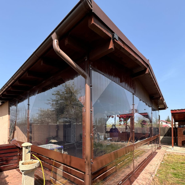 Pe langa un aspect placut, inchiderea cu folie transparenta aduce confort in orice sezon. Vara protejeaza de vant si ploaie, iar iarna pastreaza caldura si impiedica patrunderea frigului. Este o investitie care creste valoarea si functionalitatea spatiului tau exterior.
