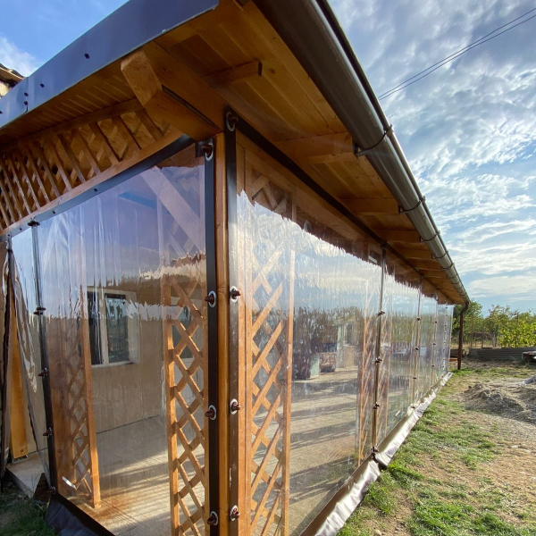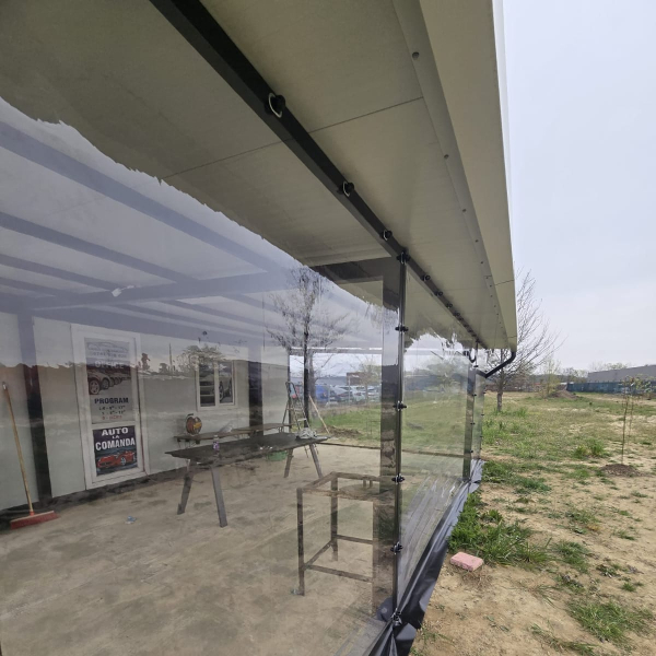 Pe langa un aspect placut, inchiderea cu folie transparenta aduce confort in orice sezon. Vara protejeaza de vant si ploaie, iar iarna pastreaza caldura si impiedica patrunderea frigului. Este o investitie care creste valoarea si functionalitatea spatiului tau exterior.