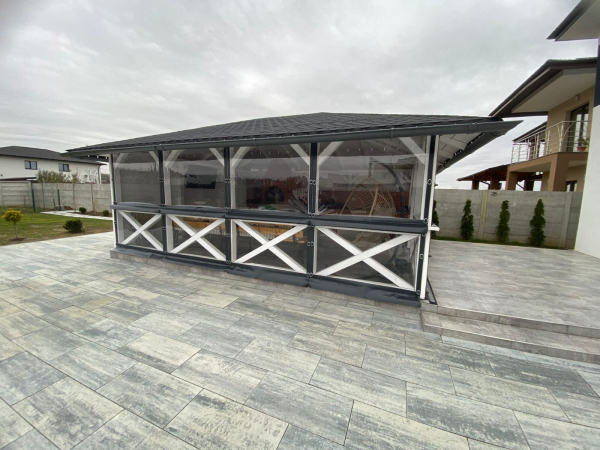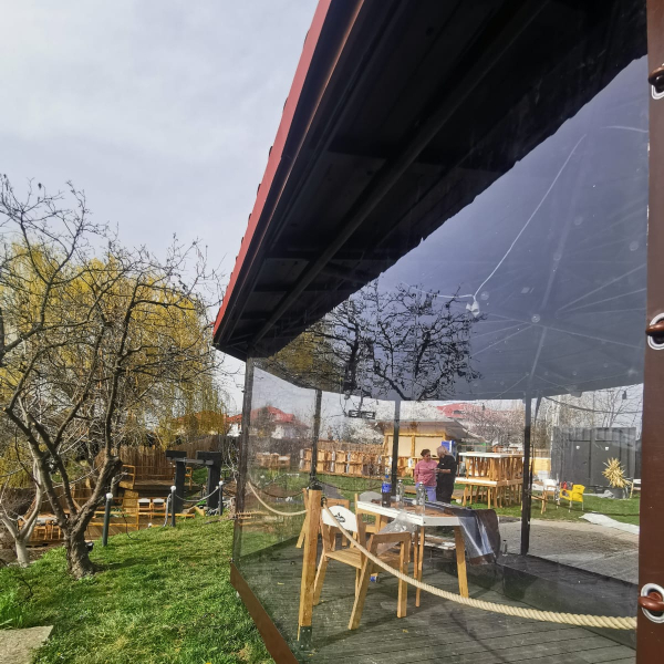 Pe langa un aspect placut, inchiderea cu folie transparenta aduce confort in orice sezon. Vara protejeaza de vant si ploaie, iar iarna pastreaza caldura si impiedica patrunderea frigului. Este o investitie care creste valoarea si functionalitatea spatiului tau exterior.