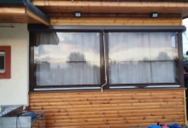 Daca vreti sa va bucurati de terasa sau foisorul dvs. si in zilele cu vreme urata, atunci acest sistem de inchidere cu folie transparenta se va ridica la asteptarile dvs. Un sistem simplu de folosit, elegant, discret si foarte eficient in etanseizarea terasei, tot sistemul este confectionat din aluminiu acesta avand o forma eleganta si se poate comanda in culoarile de alb si maro, caseta este vopsita in camp electrostatic, un procedeu care asigura rezistenta mare in utilizare.