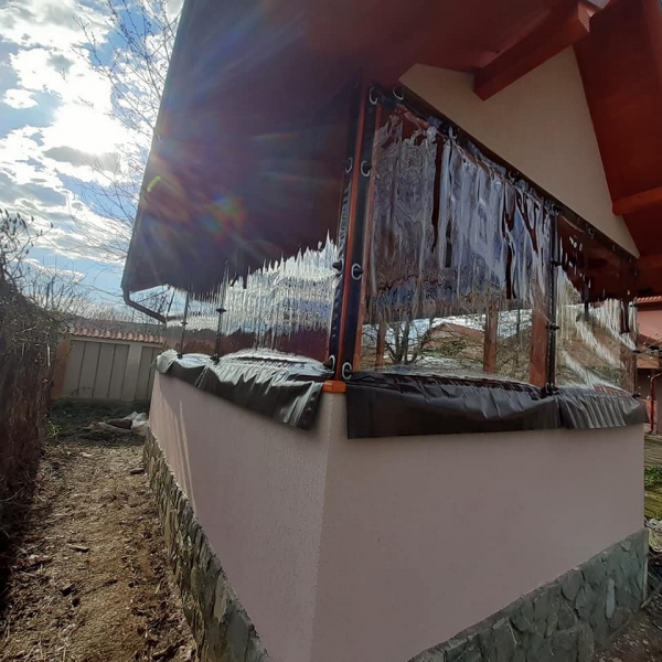 Confectionam folie transparenta cu prindere simpla pe bride sau pe rulou manual / automatizat cu telecomanda din materiale de calitate superioara la preturi avantajoase si design deosebit. Foliile transparente sunt ideale pentru proprietatile private, dar si pentru cafenele si restaurante cu terase in aer liber sau amenajarea spatiilor pentru fumat.