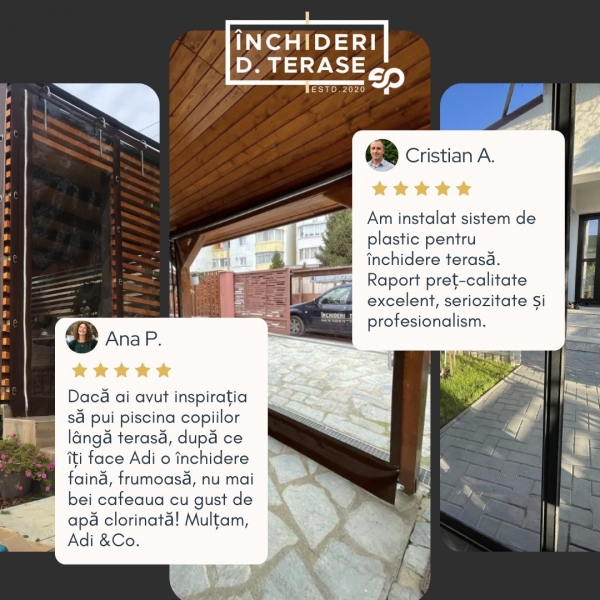 Daca am reusit sa va captam atentia asupra sistemelor de inchidere a teraselor si foisoarelor si nu numai, va asteptam sa ne contactati cu incredere pentru a va face o oferta de pret.